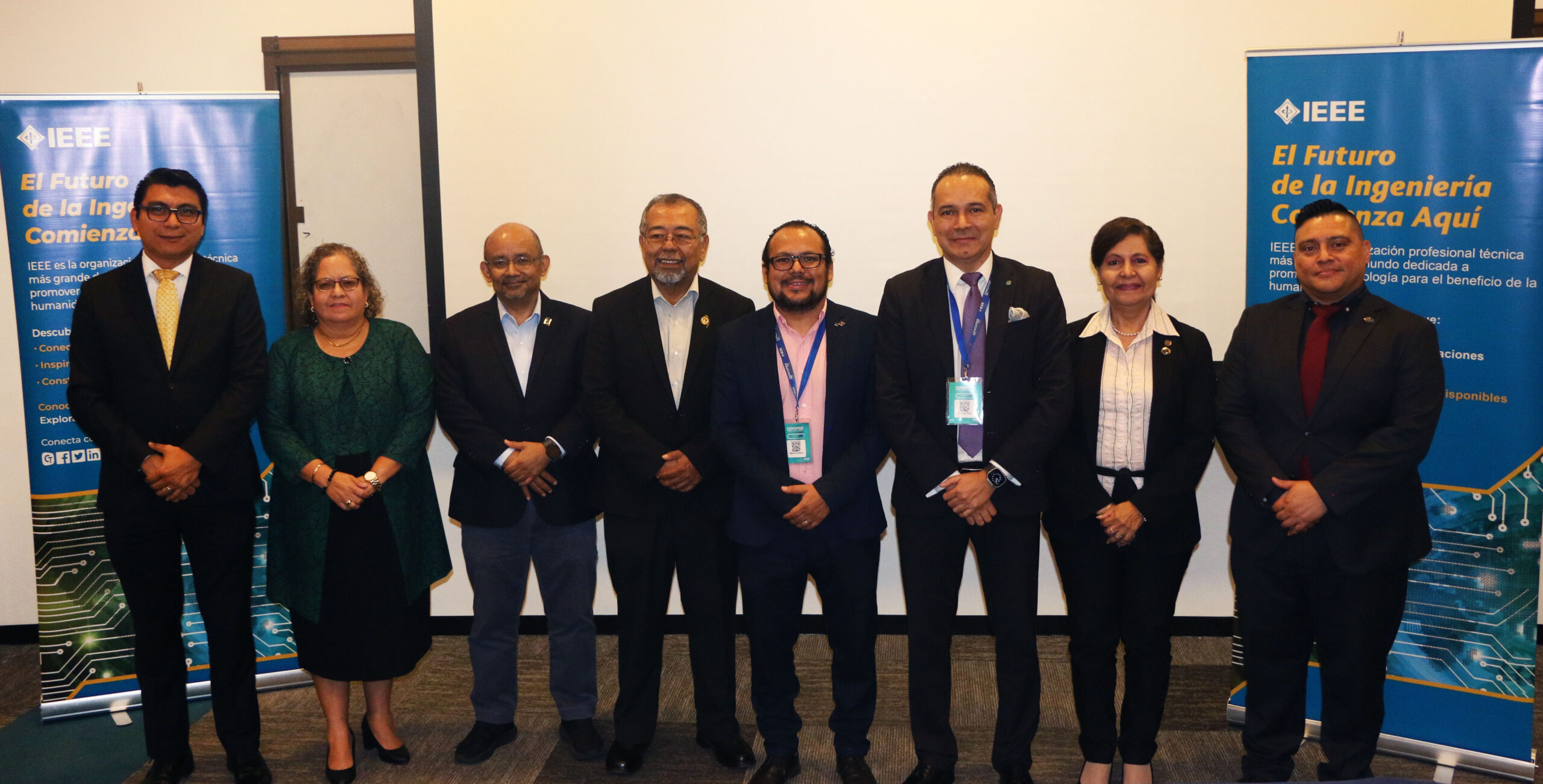 En el acto estuvieron presentes el presidente de IEEE Sección El Salvador, Ing. Armando Ruiz, el decano de la FIA, M.Sc. Luis Barrera, el director de la Escuela de Ingeniería Eléctrica, Ing. Werner David, y el secretario de la misma escuela, M.Sc. José Wilber Calderón.